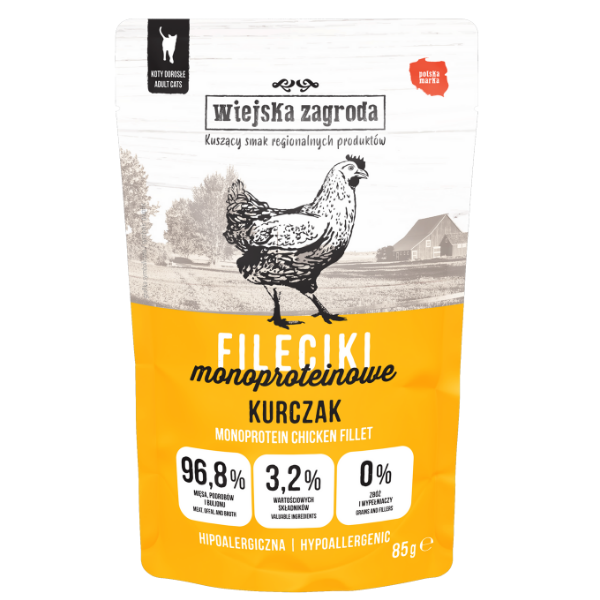 Poczuj radość swojego kota, wręczając mu Wiejską Zagrodę Fileciki Kurczak! Spraw, by każdy kęs był dla niego prawdziwą ucztą.