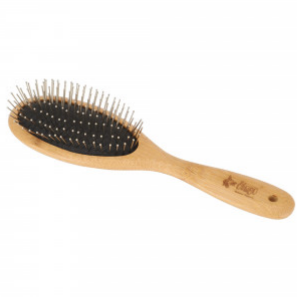 Ergonomiczna rączka wykonana z naturalnego bambusa nie tylko nadaje szczotce elegancki wygląd, ale również gwarantuje wygodny chwyt podczas pielęgnacji. Bambus to materiał ekologiczny, co sprawia, że wybierając tę szczotkę, dbasz nie tylko o swojego pupila, ale również o środowisko.