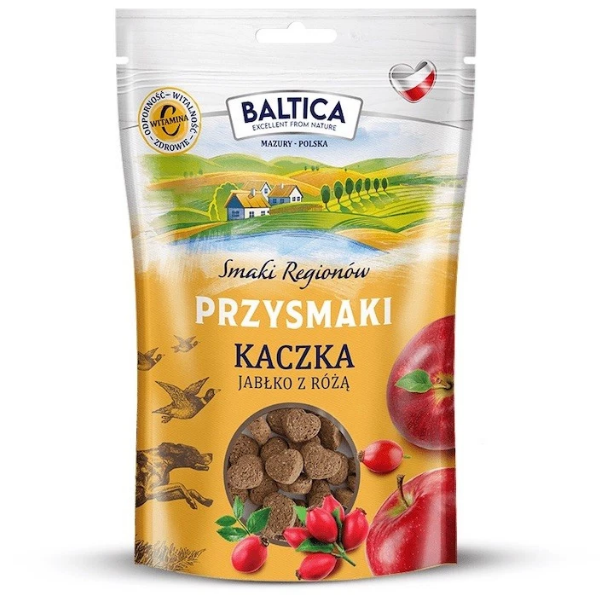 Naturalne składniki: Przysmaki Baltica są przygotowane z wysokiej jakości mięsa kaczki, co sprawia, że są nie tylko pyszne, ale i zdrowe. Jabłko i dzika róża dodają wyjątkowego smaku oraz cennych właściwości odżywczych.