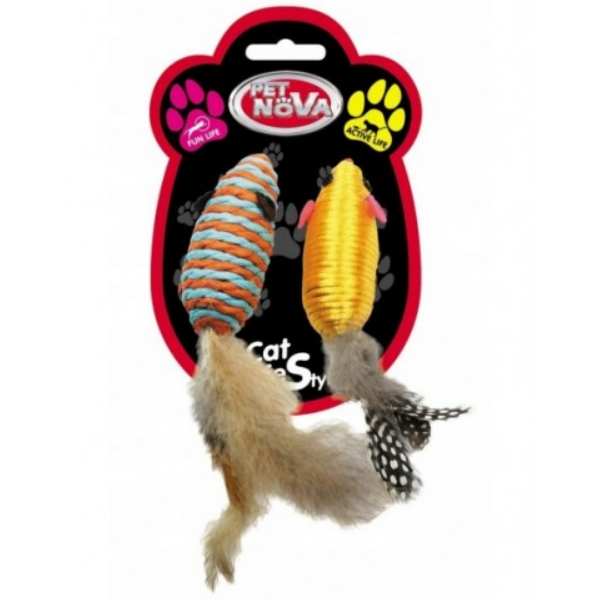 Oferujemy uroczy zestaw dwóch myszek z piórami od marki Pet Nova, idealny do zabawy dla Twojego małego przyjaciela! Te kolorowe myszki o wymiarach 7 cm na 3 cm są świetnym sposobem na stymulację ruchową i intelektualną Twojego kota.
