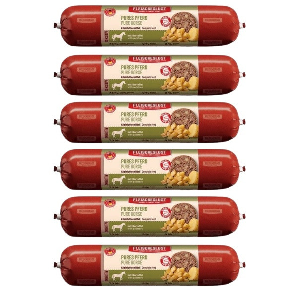 Konina z ziemniakami składa się z tylko jednego źródła białka zwierzęcego, które stanowi 75% najwyższej jakości mięsa i podrobów koni, a także z pojedynczych węglowodanów i obniżonej zawartości tłuszczu. Wybrane, łatwo przyswajalne składniki są szczególnie odpowiednie dla psów wrażliwych na żywność. 9% chrupiącego warzywa, wzbogacone przez wysokiej jakości olej rzepakowy bogaty w kwasy tłuszczowe omega-6, sprawia, że nasza wrażliwa karma pełnoporcjowa jest naturalnie dostosowana do potrzeb.