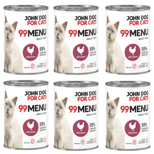 99 MENU od John Dog for Cats, to karma, która ma 99% składników mięsnych! Wysokomięsne karmy mokre, pełnoporcjowe dla kotów dorosłych - 6 smaków w dwóch gramaturach 200g i 400g w Megazoologiczny.pl