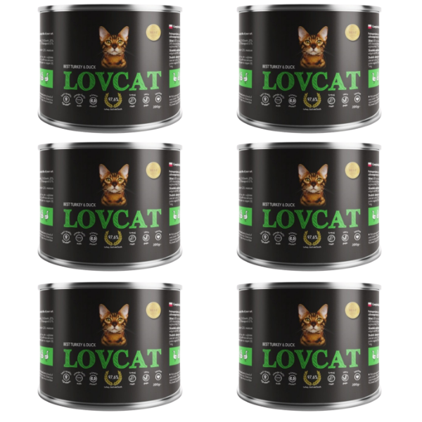 Odkryj smakowity duet, który zachwyci Twojego pupila! Lovcat Best to wyjątkowa karma dla kotów, stworzona z myślą o najbardziej wymagających smakoszach. W opakowaniu 200g znajdziesz idealne połączenie soczystego indyka i delikatnej kaczki, które dostarczą Twojemu kotu nie tylko pysznego smaku, ale także cennych składników odżywczych.