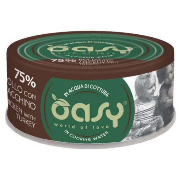 Oasy More Love Kurczak z Indykiem, 70 g – luksusowa karma mokra dla kota, która zapewni Twojemu pupilowi doskonałe doznania smakowe i pełnię witamin. Starannie wyselekcjonowane składniki, takie jak soczysty kurczak i delikatny indyk, gwarantują wysoką jakość i naturalny smak. Idealne uzupełnienie codziennej diety kota, wspierające zdrowie i dobre samopoczucie. Pakowanie 70 g jest wygodne i praktyczne, idealne na pojedynczą porcję. Postaw na naturalność i smak, który pokochają Twoi futrzani przyjaciele!