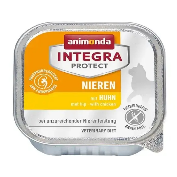 ANIMONDA Integra Protect Nieren Kurczak 100g to specjalistyczna, weterynaryjna karma stworzona z myślą o dorosłych kotach wymagających wsparcia dla zdrowia nerek w przypadku chronicznej niewydolności.