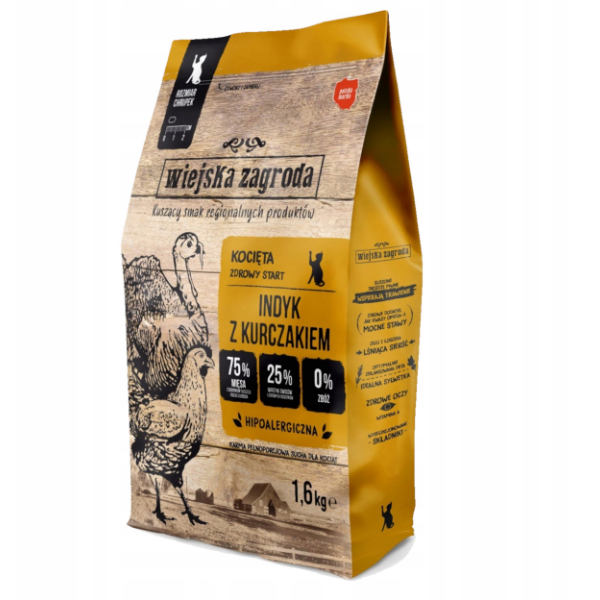 Wiejska Zagroda karma sucha dla kota Indyk z kurczakiem kocięta 1,6 kg
